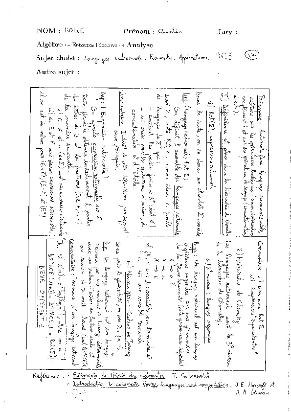 909 - Langages rationnels. Exemples et applications. Des applications dans le domaine de la compilation entrent naturellement dans le cadre de ces leçons.