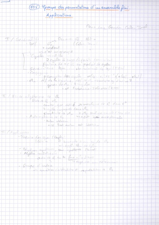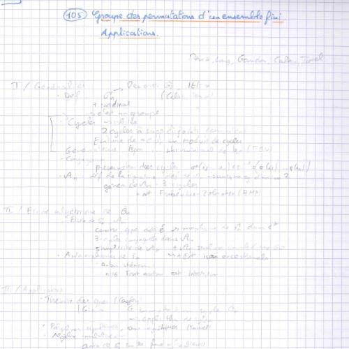 105 - Groupe des permutations d'un ensemble fini. Applications.)