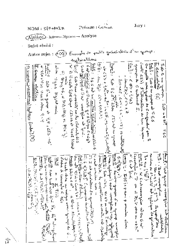 2014 108 - Exemples de parties génératrices d'un groupe. Applications.) C'est une leçon qui demande un minimum de culture mathématique. Peu de candidats voient l'utilité des parties génératrices dans l'analyse des morphismes de groupes ou pour montrer la connexité de certains groupes.