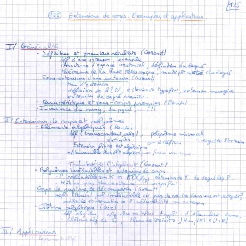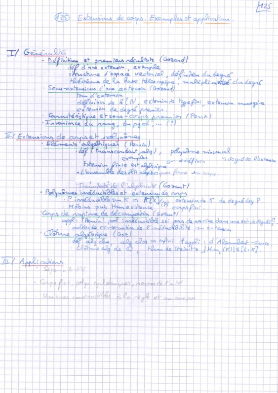 Très peu de candidats ont choisi cette leçon. On doit y voir le théorème de la base téléscopique et ses applications à l'irréductibilité de certains polynômes, ainsi que les corps finis. Une version dégradée de la théorie de Galois (qui n'est pas au programme) est très naturelle dans cette leçon.