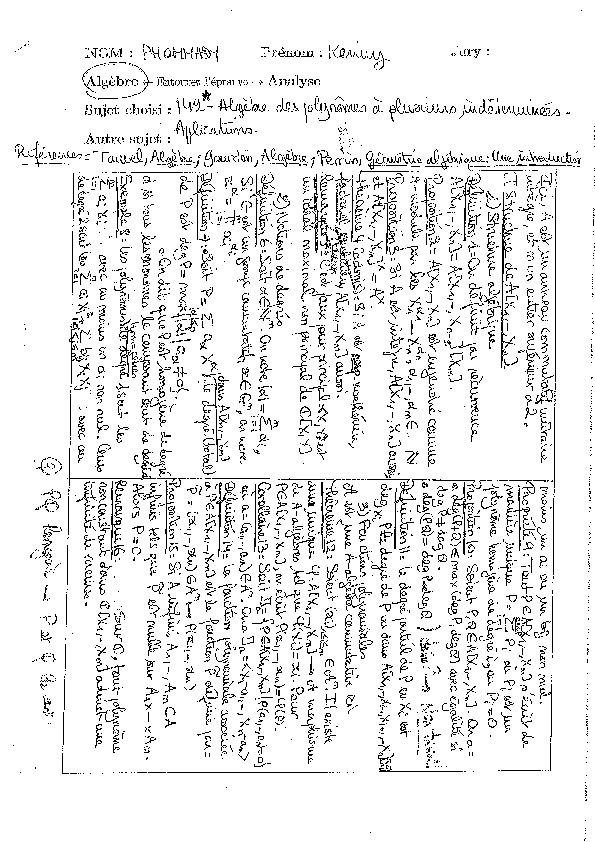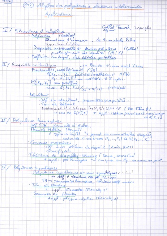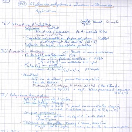 142 - Algèbre des polynômes à plusieurs indéterminées. Applications.)