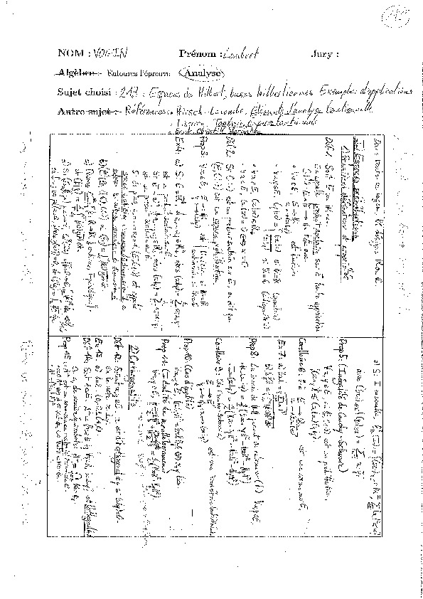 Il est important de faire la différence entre base algébrique et base hilbertienne. De plus, la formule de la projection orthogonale sur un sous espace de dimension finie d'un espace de Hilbert doit absolument être connue. Il faut connaître quelques critères simples pour qu'une famille orthogonale forme une base hilbertienne et illustrer la leçon par des exemples de bases hilbertiennes (polynômes orthogonaux, séries de Fourier, etc.). Le théorème de projection sur les convexes fermés (ou sur un sous-espace vectoriel fermé) d'un espace de Hilbert H est régulièrement mentionné. Les candidats doivent s'intéresser au sens des formules $x = \sum_{n \geq 0} (x|e_n)e_n$ et $||x||^2 = \sum_{n \geq 0} (x|e_n)^2$ en précisant les hypothèses sur la famille $(e_n)$ et en justifiant la convergence.