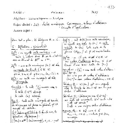 Leçon 223 : Suites numériques. Convergence, valeurs d'adhérence. Exemples et applications.